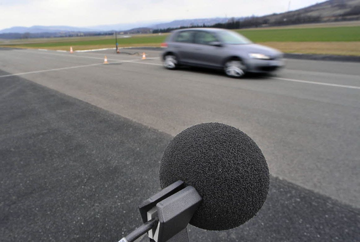 Η δοκιμή : ένα μικρόφωνο τοποθετείται στην άκρη μιας πίστας ώστε να μετρηθεί το επίπεδο θορύβου καθώς το όχημα δοκιμής διέρχεται με ταχύτητα 80 km/h.